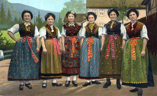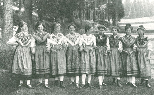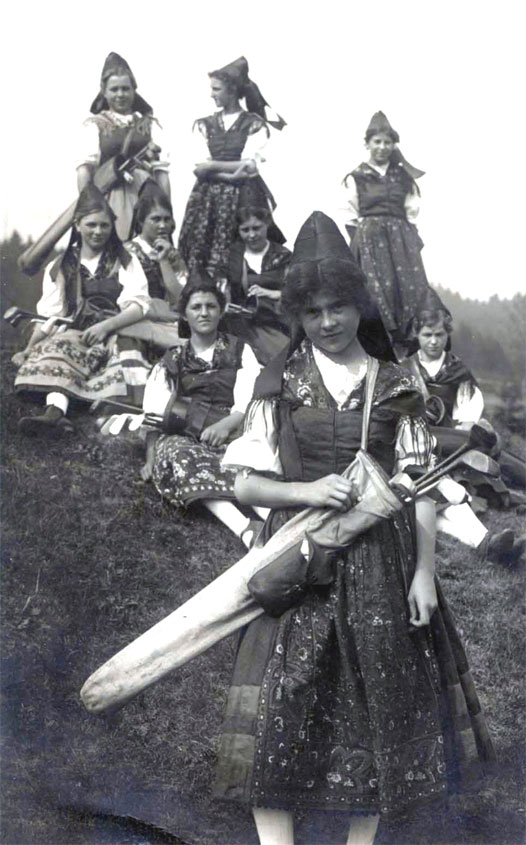 Die thüringische Tracht bei den Caddies gehört zu den Besonderheiten des Golf-Clubs Oberhof. Meist stammen die Damen aus den Nachbargemeinden. Aber auch Oberhofer Mädchen verdienen sich eine Mark extra. |