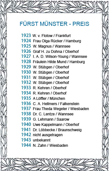 6. Die Rückgabe des "Sachsenschild" hat spätestens am 1. Mai des auf die Übergabe folgenden Jahres an den Schatzmeister des Herzoglichen Golf-Clubs zu geschehen.