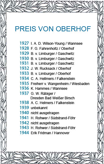1. Der von seiner königlichen Hoheit des Herzog Carl Eduard von Sachsen Coburg und Gotha dem Herzoglichen Golf-Club Oberhof i. Thür. verliehene Wanderpreis: "Sachsenschild" wird alljährlich auf den Golffeldern des Herzoglichen Golf-Clubs zu Oberhof i. Thür. ausgespielt.